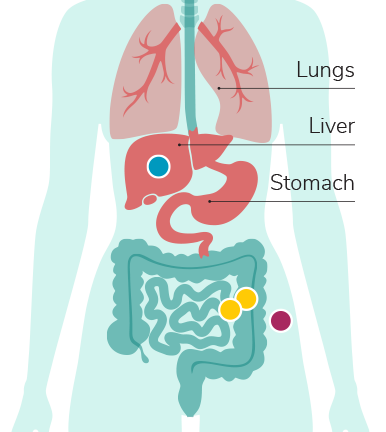 The cancer has spread to other parts of the body – often the liver or lungs. This is known as metastatic bowel cancer.