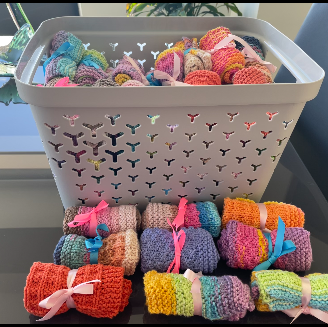“Now we knit snoods and dish/face cloths, and I sell them at the local markets to raise money for BCNZ. I started knitting these because there isn’t a big need for snoods in the summer.”